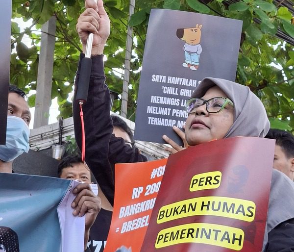 Di antara kerumunan massa aksi, Irsyan Hasyim, Ketua AJI Jakarta, juga menyuarakan sikap tegas. Menurutnya, pengadilan tidak memiliki wewenang untuk menangani perkara pers yang sudah diproses oleh Dewan Pers.